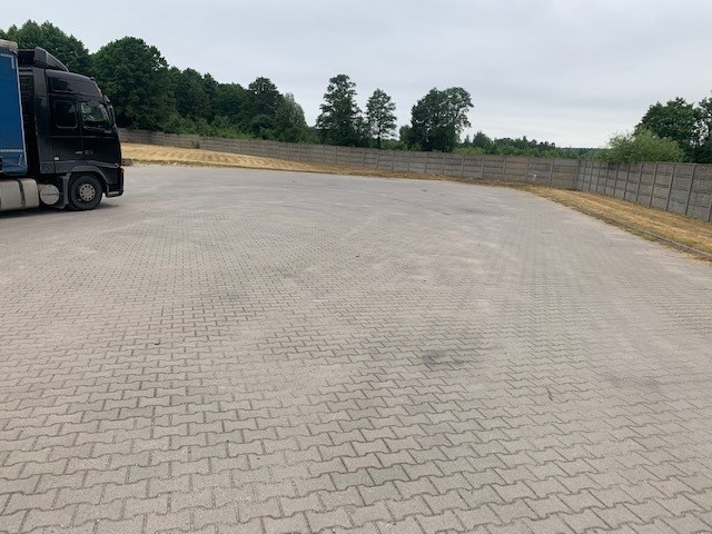 Plac manewrowy wyłożony kostką.