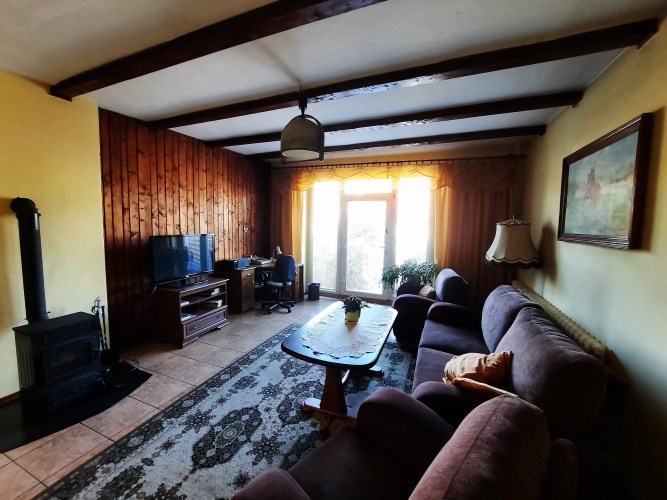 Budynek budowany tradycyjną metodą budowlaną, grube mury, wysoka piwnica, dach pokryty papą, okna wymienione. Całość naprawdę zadbana.