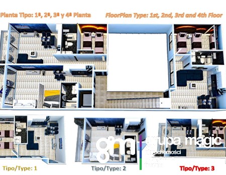 Budynek mieszkalny składa się z 17 nieruchomości, obejmujących apartamenty typu studio, a także układy z 1, 2 i 3 sypialniami. Zaprojektowane z myślą o nowoczesnym życiu, każda jednostka oferuje przestronne wnętrza i wysokiej jakości wykończenia. Mieszkańcy mogą korzystać ze wspólnego dachu z podgrzewanym szklanym basenem, idealnym do całorocznego relaksu.