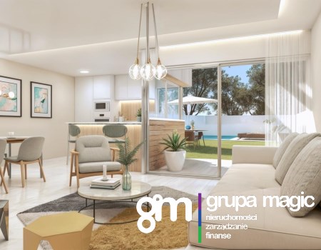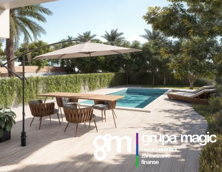 Na zewnątrz nieruchomość oferuje prywatny ogród o powierzchni 265 m², idealny do spędzania czasu na świeżym powietrzu, opalania się, organizowania grillów lub relaksu. Istnieje możliwość dodania basenu (za dodatkową opłatą). Na terenie działki znajduje się również prywatny parking dla większej wygody.