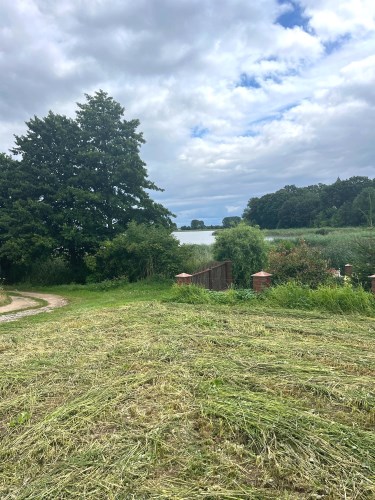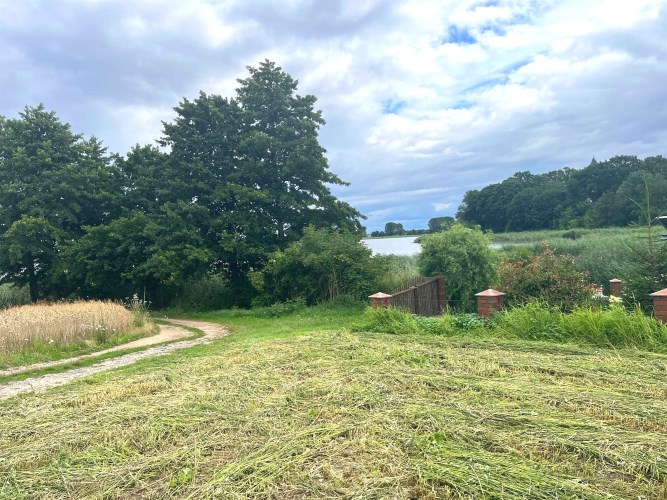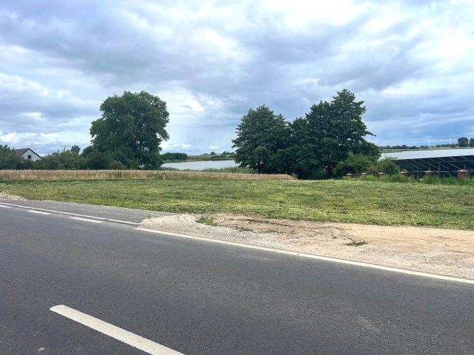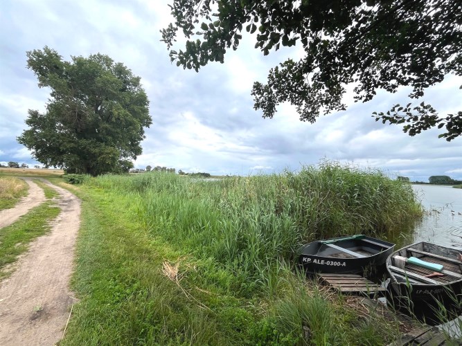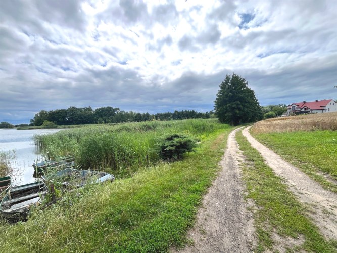 Druga krawędź działki przy gminnej drodze gruntowej, prowadzącej do jeziora.