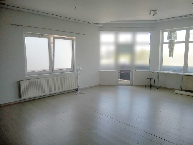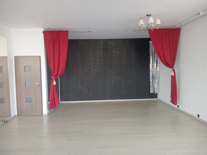 Lokal o powierzchni ok. 100 mkw na 1 piętrze w ciągu pawilonów. Składa się obecnie z 3 pomieszczeń, toalety, schowka, małego korytarza. Istnieje możliwość stworzenia jednej dużej przestrzeni. Do lokalu przynależy balkon, na którym można zawiesić baner reklamowy/szyld.