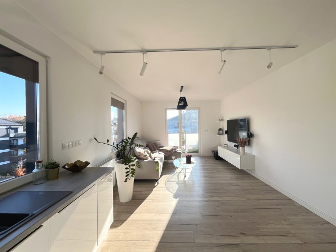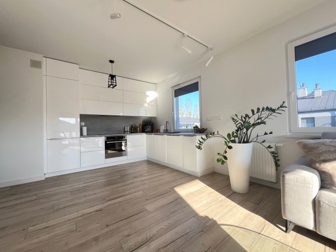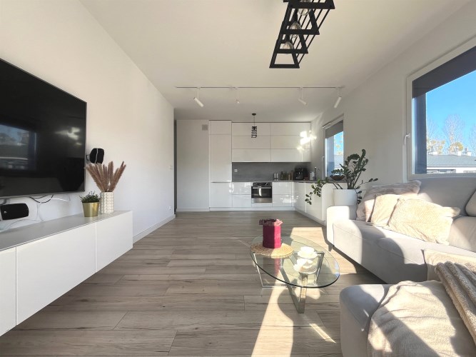 - przestronny salon z aneksem kuchennym i balkonem;