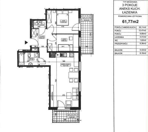 Zapraszam do zapoznania się z ofertą sprzedaży komfortowego, obszernego 3 pokojowego mieszkania z dwoma balkonami,
