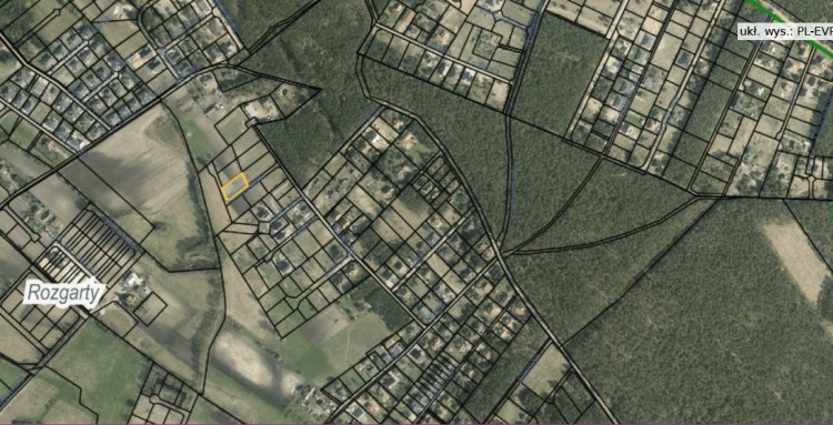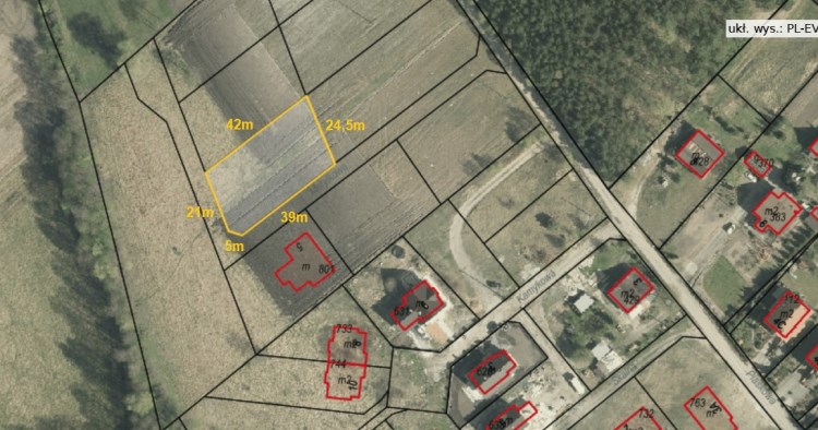 Powierzchnia nieruchomości - 1003 mkw. Kształt, przybliżone wymiary i usytuowanie na rzucie.