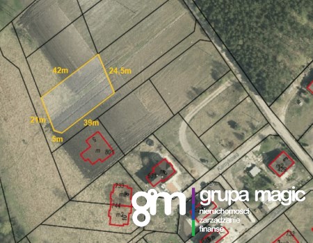 Dojazd drogą gminną. W cenie działki będzie sprzedawany także udział w drodze wewnętrznej (działka znajduje się w odległości 60m od drogi gminnej).