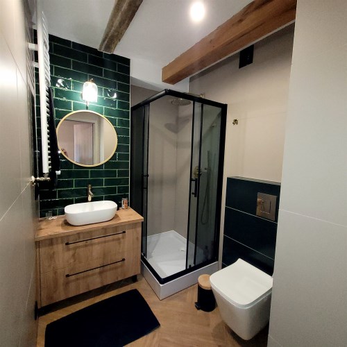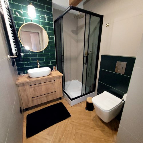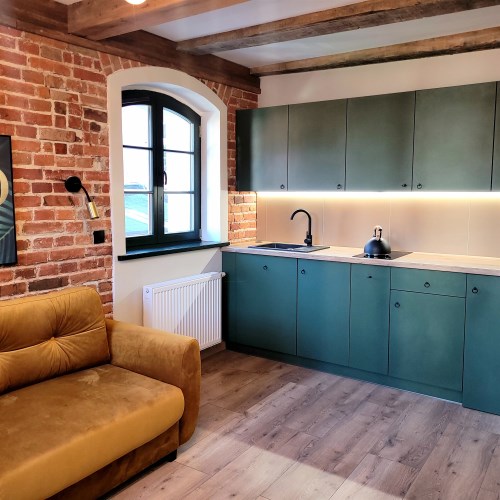 "Mieszkania" wyposażone, aneks kuchenny wraz z lodówką, płytą indukcyjną.W łazienkach kabiny prysznicowe.